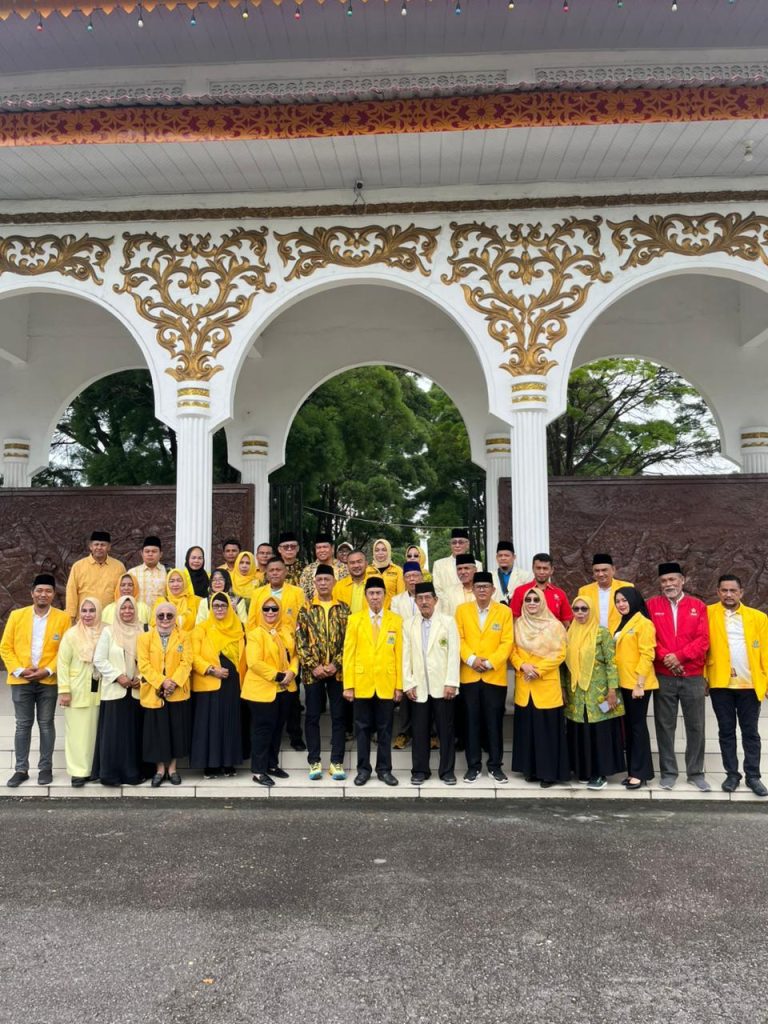 Tampak dalam rombongan, anggota Fraksi Partai Golkar DPRD Riau, Hj. Zulaikha, S. Sos, ME. Sedangkan anggota rombongan pengurus yang lain hadir, Eva Nora, SH, Gumpita, Yasmin, Ketua Depidar SOKSI Riau Ridwan GP, Ketua MDI Riau.